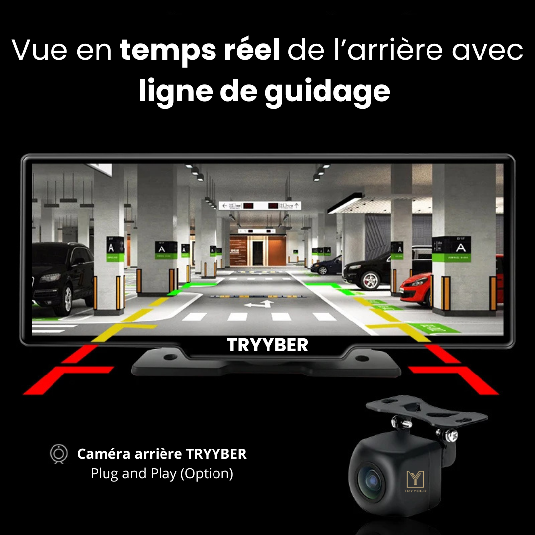 Démarrez votre voiture, passez en marche arrière et vérifiez que l’image de la caméra s’affiche sur l’écran du Tryyber Pro. Ajustez l’angle de la caméra si nécessaire pour une visibilité optimale.